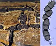 | Dothidea puccinioides, stroma and bitunicate ascus | |