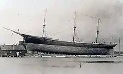 The Down Easter or Downeaster was a type of 19th-century sailing ship built in Maine, and used largely in the California grain trade. It was a modification of the clipper ship using a similar bow but with better cargo handling. It achieved a balance between speed and tonnage such that it made the wheat trade between California and Great Britain competitive with east coast grain trade via steam ship. It could make the trip between San Francisco and Liverpool in 100 days, despite rounding Cape Horn and crossing the equator twice.[1] A more unusual name for the rig was shipentine.