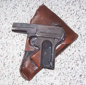 ![]() Dreyse m1907. This example has World War I Imperial German ordnance acceptance stamps, and a late World War II issued Presstoff holster | |