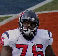 Brown was selected by the Houston Texans in the first round (26th overall) of the 2008 NFL Draft.[8] He was only the second Virginia Tech offensive lineman ever drafted in the first round of an NFL Draft, after Eugene Chung in 1992. Brown started all sixteen games as a rookie in 2008 and became the first Texans rookie lineman to start every game since Chester Pitts in 2002. In 2009, Brown protected the blind side of Houston Texans quarterback Matt Schaub who led the NFL with 4,770 passing yards and helped the offense set franchise records with 6,129 total yards and 388 points.[9]