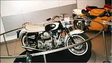 The 1964 Ducati Berliner 1260 Apollo was a prototype 1,257 cc (76.7 cu in) V4 engine motorcycle producing 100 bhp (75 kW) and capable of over 120 mph (190 km/h). It was never put into production, but did influence other production Ducatis that followed. Both Ducati and their United States distributor, Berliner Motor Corporation, were experiencing declining sales of existing small-capacity single-cylinder models, and sought to create a bike to compete with Harley-Davidson. Berliner Motor was keen to have a model that could win lucrative police motorcycle supply contracts, and that could also sell as a civilian touring bike.[2][3][4]