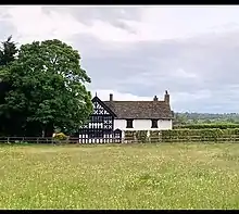 Duddon Old Hall is a country house in the village of Duddon, Cheshire, England. It dates from the later part of the 16th century, the house was in the ownership of the Done family at this time. Alterations and additions were made in the early 19th century, and later in the century the timber framing was restored in 1903–4 and these works may be associated to local architect John Douglas of Chester. The timber framing was most recently extensively repaired between September 2021 and April 2022. It is constructed partly in timber-framing, and partly in brick, on a stone plinth. It is roofed partly in stone-slate, and partly in Welsh slate. The plan consists of a hall with a cross wing. The house is in two storeys, and its south front has four bays. The bay at the left end is timber-framed; it projects and has a gable with a bargeboard.[1] The architectural historian Nikolaus Pevsner comments that the black-and-white decoration of this bay is "very rich".[2] It consists of studding in the ground floor, lozenges and shaped balusters in the upper floor, and lozenges and serpentine struts in the gable. In the adjacent bay is a wooden doorcase with a triangular pediment. All the windows are casements.[1] Internally, the main chamber is in the cross wing, which is open to the roof.[3] The house is recorded in the National Heritage List for England as a designated Grade II listed building.[1] To the northeast of the house is a 16th-century barn, constructed in timber-framing with brick infill, which is also listed at Grade II.[4]