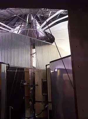 The Siberian grain-silo house was the first system in which Fuller noted the "urban dust dome" effect: many installations have reported that a dome induces a local vertical heat-driven vortex that sucks cooler air downward into a dome, if the dome is vented properly—a single overhead vent, and peripheral vents. Fuller adapted the later units of the grain-silo house to use this effect.