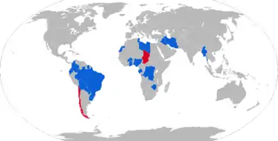 Chad's Transitional Government of National Unity (GUNT) received five EE-9 Cascavels from Libya in 1986.[21] Over the course of the Chadian–Libyan conflict, seventy-nine ex-Libyan Cascavels were captured or recovered from the Aouzou Strip by the Chadian military, which continues to hold them in storage.[22]