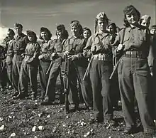 The Greek People's Liberation Army (Greek: Ελληνικός Λαϊκός Απελευθερωτικός Στρατός (ΕΛΑΣ), Ellinikós Laïkós Apeleftherotikós Stratós (ELAS)[lower-alpha 1] was the military arm of the left-wing National Liberation Front (EAM) during the period of the Greek resistance until February 1945, when, following the Dekemvriana clashes and the Varkiza Agreement, it was disarmed and disbanded. ELAS was the largest and most significant of the military organizations of the Greek resistance.