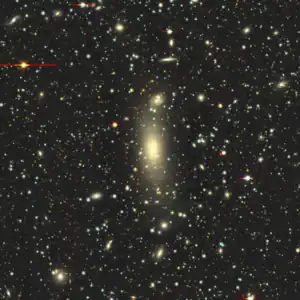 ESO 383-76 (ESO 383-G 076) is an elongated, X-ray luminous supergiant elliptical galaxy, residing as the dominant, brightest cluster galaxy (BCG) of the Abell 3571 galaxy cluster, the sixth-brightest in the sky at X-ray wavelengths.[3] It is located at the distance of 200.6 megaparsecs (654 million light-years) from Earth, and is possibly a member of the large Shapley Supercluster. With the diameter of about 540.89 kiloparsecs (1.76 million light-years), it is one of the largest galaxies known.