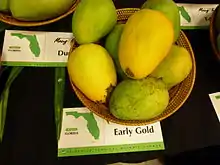![]() Earlygold mangoes at the Fairchild Tropical Botanic Garden's 2010 International Mango Festival in Miami, Florida | |