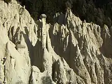 The earth pyramids of Platten (German: Erdpyramiden von Platten or Erdpyramiden bei Oberwielenbach; Italian: Piramidi di Plata [piˈraːmidi di ˈplaːta]) are earth pyramids located in Platten in the municipality of Percha, near Bruneck in South Tyrol, Italy.