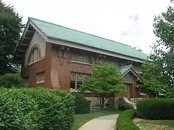Eckhart Public Library and Park is a historic library building and public park located at Auburn, DeKalb County, Indiana. The library was built in 1911, and is a two-story, glazed brick building with Bungalow / American Craftsman design elements. It has a gable roof, round arched windows, and sits on a raised basement faced with Bedford limestone. The library and park were donated by Charles Eckhart. Located in the park is a contributing fountain added in 1918.[2]: 2