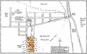 ".. a swamp extends along the western side of Pease Street, and ..[to the immediate east] .. is a swamp. These two swamps are connected by a water-course which passes ..[to the immediate south]. Thus this area has low-lying land on the east, south and west..."