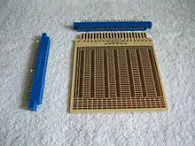 Video game cartridges typically take the form of a PCB with an edge connector: the socket is located within the console itself. The Nintendo Entertainment System was unusual in that it was designed to use a zero insertion force edge connector:[1] instead of the user forcing the cartridge into the socket directly, the cartridge was first placed in a bay and then mechanically lowered into position.