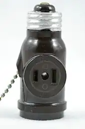 Some adapters for wall outlets use an Edison screw, allowing a light socket to become an ungrounded electrical outlet (such as to install Christmas lights temporarily via a porch light), or to make a pull-chain switch with two outlets, or to split it for two lamps. Another adapter can make a wall outlet into a lamp holder (lamp socket).