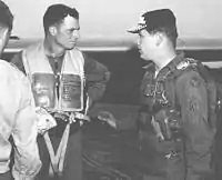 Edwin A. Doss (September 14, 1914 – January 7, 1996)[1] was an American fighter pilot and commander in the U.S. Air Force during World War II and Korean War. Logging more than 4,500 flying hours, Doss flew 573 combat hours and accrued 280 combat missions during his leadership in the South West Pacific Theatre and Korean War.[2][3] For his two-year service as commander of the 35th Fighter Group during World War II, Doss was awarded the Distinguished Flying Cross, Legion of Merit, and the Air Medal.[4][5] He received his second Legion of Merit and the Korean Ulchi medal with a Silver Star for his assignments as commander of the 49th Fighter Bomber Wing and the 3rd Bomber Wing at Kunsan, Korea. Colonel Doss's service has been cited as integral to the development of long-range fighter tactics in the South West Pacific Theater.[6]
