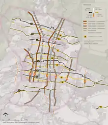 Current state of ejes viales, showing incomplete and partially complete sections.