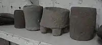 - Grinding stones or metates, three supports, 4 supports, unsupported, curved, table type, flat, with feline heads, etc. (The museum has over 50 of these pieces).