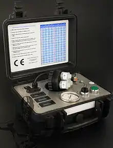 A small pressure vessel for hyperbaric testing of cells is also available in which a pressurised oxygen atmosphere of up to 2 bar can be used to check linearity at higher pressures using the electronics of the rebreather.[14]