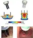 All biomedical applications of cell electropermeabilization use direct currents (all unipolar) with short and intense pulses (even though in vitro, time-decayed pulses can be used). Amplitude of the pulses depends on the tissues and on the shape and position of the electrodes, but, in vivo, in the case of the tumors, the amplitude of the electric pulses has to be high enough to establish an electrical field of 400 V/cm in the area of tumor (8 pulses with duration of 100 microseconds).[25] The duration of pulses is usually one hundred microseconds. In early experiments, pulses were delivered with period of 1 second (i.e. at a repetition frequency of 1 Hz); today, pulses are delivered in a much shorter time period, at a repetition frequency of 5000 Hz, resulting in a much less discomfort for the patient and in the shorter duration of treatment.[26][27] For treatment of deep-seated tumors in relative vicinity of the heart, pulses are synchronized with absolute refractory period of each heartbeat to minimize the probability of interaction of pulses with the heart function.[28][29]