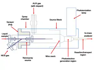 Schematic diagram of Atmospheric pressure electron capture dissociation (AP-ECD) source