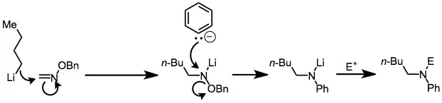- Beak, Peter; Selling, Gordon W. (1989). "Displacements at the nitrogen of lithioalkoxylamides by organometallic reagents". J. Org. Chem. 54 (23): 5574–80. doi:10.1021/jo00284a034.