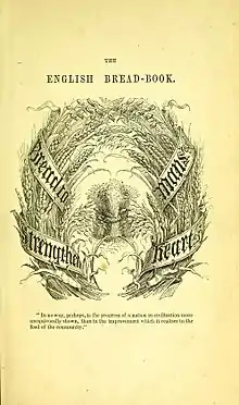 Acton had been disappointed that she had not been able to add as much information into the 1855 edition about bread-making as she wanted to, but decided, despite her health, that she would take on the subject in a new work, The English Bread-Book for Domestic Use.[lower-alpha 10] Published in May 1857, this was not a recipe book along the same lines as Modern Cookery, but is described by Hardy as "a serious, scientific study ... much darker in tone than her previous work".[55] It consists of a history of bread-making in England, improvements made to the bread-making process in Europe, an examination of the ingredients used and recipes of different types of bread.[56] Acton also included information about the adulteration of bread by flour millers and bakers of the time,[57] which included the addition of alum and what she called "other deleterious substances".[58] The food writer Elizabeth Ray observes that the book was less successful than Modern Cookery, and was not reprinted until 1990.[1]