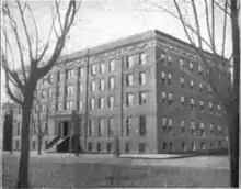 The Lucy Webb Hayes National Training School for Missionaries and Deaconesses, located at Washington, D.C., was the most important enterprise of the society. The location of the school on North Capitol Street afforded ample space for enlargement, and this occurred with the erection of Rust Hall, located near the place where she was born.[15] For three years, while she was sick, suffering from weakness and difficulty in breathing, her sickroom became the center of her work. She dictated hundreds of letters pertaining to the welfare of the society.[16]