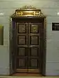 There are broad stairs on either side and a glass roof in an ornamental steel frame provides natural light. The building features ornate glove lamps, intricate columns, carefully proportioned classical features gracing doorways, marble and brass to trim iron and stone.