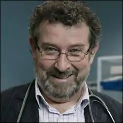 Elliot is described on the BBC Online Holby City homepage as "a disorganised genius" who "comes across as a bumbling eccentric" but has surgical expertise which is "second to none".[6] Bradley has deemed Elliot "a medical Columbo", who is "shambling, untidy but good with patients and a genius medically",[1] as well as "a brilliant surgeon who does everything in an off-the-wall way."[5] He has been described as "genial" by The Mirror's Shelley,[4] while fellow Mirror critic Jane Simon has deemed him "shambling" and "not the most convincing medic we've ever seen".[7] Comparing Elliot to fellow cardiothoracic consultant Connie Beauchamp (Amanda Mealing), Bradley explained: "Connie is text book brilliant, whereas Elliot is more inspired. He may seem eccentric but he really listens to his patients - he's very straight forward and not at all stuck up. They are chalk and cheese. Connie's side of the office is very neat and tidy. But Elliot's is a total mess. She's quite uptight, and anybody as relaxed as Elliot really gets on her nerves."[5] On 17 November 2006, Bradley appeared as Elliot in a Children in Need segment featuring the Holby City cast performing a version of "Hung Up" by Madonna.[8][9]
