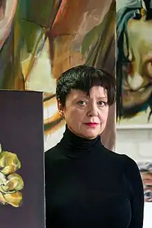 Since 1991, she has been a part of the group (e.) Twin Gabriel with her partner Ulf Wrede.[5] Gabriel was included in the 1991 exhibition Berlin Divided: Sissel Tolas, Milovan Markovic, Else Gabriel, Rolf Julius at MoMA.[6] In 2019 she was included in the exhibit The Medea Insurrection: Radical Women Artists Behind the Iron Curtain at Wende Museum in Culver City, California.[7]