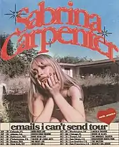 The Emails I Can't Send Tour is the fourth headlining concert tour by American singer, songwriter and actress Sabrina Carpenter in support of her fifth studio album Emails I Can't Send (2022). The tour began on September 29, 2022 in Atlanta, United States and is set to conclude on August 4, 2023 in Chicago, United States, comprising 78 shows throughout three legs in North America, one leg in South America, one leg in Europe and one leg in Asia.[1][2]