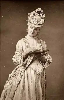 Later in 1870 she played in Free Labour by Charles Reade at the Adelphi Theatre[6] and at Christmas, she starred at the Olympic Theatre as Prince Lardi Dardi in a pantomime of The White Cat. She began to build a reputation in drama playing, for example, Kate Bertram in The Rights of Woman.[1][7] In 1871, she toured with Henry Neville in Dion Boucicault's Elfie, playing Rosie Aircastle and Sam Willoughby in The Ticket-of-Leave Man.[1] In 1872 she was Alfonzo in a burlesque of Zampa at the Royal Court Theatre.[6]
