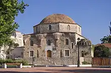 Outside the Ottoman mosque there are remains of an earlier Christian church which was converted into a mosque.[2] The Emir Zade Mosque is of a simple architectural style of single-dome mosque, like most in Greece and the rest of the Balkans.[2]