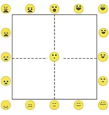 The EmojiGrid was inspired by Russell’s Affect Grid [1] and was originally developed and validated for the affective appraisal of food stimuli,[2] since conventional affective self-report tools (e.g., Self-Assessment Mannikin[3] are frequently misunderstood in that context.[2][4] It has since been used and validated for the affective appraisal of a wide range of affective stimuli such as images,[5][6] audio and video clips,[7] 360 VR videos,[8] touch events,[9] food,[10] and odors.[11][12][13] It has also been used for the affective analysis of architectural spaces [14] to assess affective experience of trail racing,[15] and to assess the emotional face evaluation capability of people with early dementia.[16] Since it is intuitive and language independent, the EmojiGrid is also suitable for cross-cultural research.[4][17]