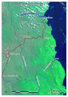 ![]() Satellite image of the Endeavour River course marked in dark blue | |