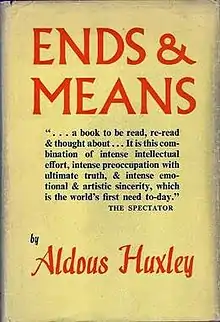 Ends and Means (an Enquiry Into the Nature of Ideals and Into the Methods Employed for Their Realization) is a book of essays written by Aldous Huxley. Published in 1937, the book contains illuminating tracts on war, religion, nationalism and ethics, and was cited as a major influence on Thomas Merton in his autobiography, The Seven Storey Mountain.