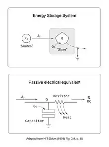 Depicted to the left is what the generic symbol for storage, which Odum named the Bertalanffy module, in honor of the general systems theorist Ludwig von Bertalanffy.