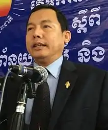 Eng Chhai Eang (Khmer: អេង ឆៃអ៊ាង born November 10, 1965) is a Cambodian politician. He served as a vice president of the Cambodia National Rescue Party, the major opposition party, until its court-ordered dissolution in 2017. He was a member of the Parliament of Cambodia and served as the Secretary General of the Sam Rainsy Party from 1999 to 2005 and again from 2007 to 2009. He also served as the Special Secretary to Sam Rainsy, the Minister of Economic and Finance, from 1993 to 1994.