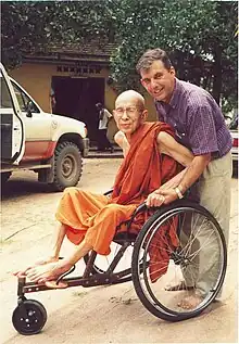 In 1991, in Phnom Penh, he founded Banteay Prieb (“The Dove House”) where children maimed by landmines receive education and people with disabilities can make wheelchairs following the Mekong model (a wooden wheelchair with three wheels).[4]