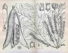 This is a large deciduous tree up to 20m in height, found at low altitudes in river valleys, but also in open woodland on rocky slopes and ridges. Bark is grey, flaking in large, irregular scales and revealing a buff surface, giving a mottled appearance. The leaves up to 25 cm long, puberulous, crowded near the ends of branches, paripinnately compound with 6 or 7 pairs of leaflets, each leaflet measuring up to 11 x 3.5 cm. The leaflets are hairless with a narrowly attenuate apex or drip-tip, and entire margin. Petioles are some 20mm in length and slender, causing the leaflets to droop. Flowers are green in colour and in branched sprays some 20 cm long arising from the axils of leaves. Engler & Prantl favoured placing E. caudatum in Wulfhorstia because it has only 6 ovules in each loculus, and because it lacks partitions inside the staminal tube, the feature which struck Anne Casimir Pyrame de Candolle when he named it Entandrophragma in 1894. The partitions, though, are variable in species and are very short in Entandrophragma speciosa Harms, so that the differences between the two genera become trivial and untenable.[3]
