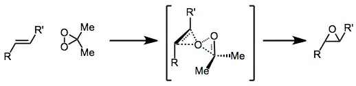 Epoxidation with dioxiranes refers to the synthesis of epoxides from alkenes using three-membered cyclic peroxides, also known as dioxiranes.[1]