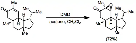 Diastereoselective DMD epoxidation of a chiral unsaturated ketone was applied to the synthesis of verrucosan-2β-ol.[13]