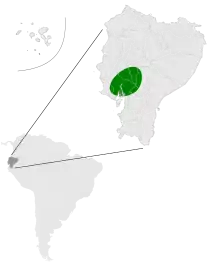 This species is found in dry, tropical forests in west central Ecuador. It has only been found in two locations.[1]