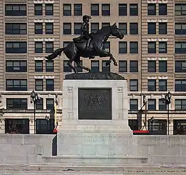 A statue of Caesar Rodney is installed in Wilmington, Delaware, United States. The statue was erected in Rodney Square in downtown Wilmington on July 4, 1923. It was designed by New York sculptor James Edward Kelly. The Gorham Company in Rhode Island cast the statue and its two bronze plaques.[1] The memorial was removed in June 2020. Its current location, preservation status, and plans for future display are currently unclear,[2] and its removal has generated controversy.