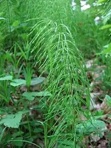 Equisetum pratense, commonly known as meadow horsetail, shade horsetail or shady horsetail, is a widespread horsetail (Equisetophyta) fern. Shade horsetail can be commonly found in forests with tall trees or very thick foliage that can provide shade and tends to grow closer and thicker around streams, ponds and rivers. The specific epithet pratense is Latin, meaning pasture or meadow dwelling.