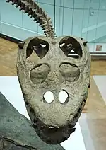 | Nothosaurus | N. cristatus | Eschenau Quarry, Baden-Württemberg.[8] | Lettenkeuper.[8] | Almost complete skull lacking mandible (GPIT/RE/09800).[8] | A nothosaur | |
