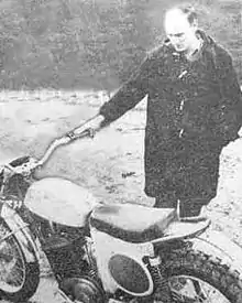 ![]() Cheney in January 1967 with a then-new model, using his own special lightweight frame and Greeves Challenger 250 engine weighing under 200 lb (91 kg)[1] | |