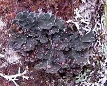 Erioderma is a genus of lichen-forming fungi in the family Pannariaceae.[2] They are commonly called mouse ears or felt lichens, and are small, pale brown to olive-brown foliose cyanolichens with a fuzzy upper surface that have the cyanobacteria Scytonema as their photobiont.[3] Most species are found in the tropics of Central and South America, although three species are found in coastal regions of North America where they generally grow on mossy branches in humid sites.[3] All North American species are rare.[3] Species of Erioderma can resemble Pannaria, Leioderma, or small Peltigera, but their fuzzy upper surface and lack of veins on their lower surface distinguishes them from these lichens.[3]