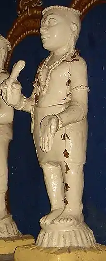 Eripatha Nayanar is depicted with a shaven head, with folded hands (see Anjali mudra) and with an axe (parashu) in crook of his hand. A holy day in his honour is observed on the fifteenth day of the Tamil month of Masi, generally coincides with 27 February.[3] He receives collective worship as part of the 63 Nayanars. Their icons and brief accounts of his deeds are found in many Shiva temples in Tamil Nadu. Their images are taken out in procession in festivals.[1]