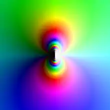 On a Riemann sphere with a point at infinity, , the function has an essential singularity at that point if and only if the has an essential singularity at 0: i.e. neither nor exists.[2] The Riemann zeta function on the Riemann sphere has only one essential singularity, at .[3]