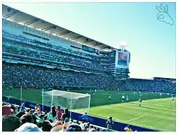The inauguration of the stadium took place on November 11, 2009, with a football match between Santos Laguna and Santos FC. Before the game, New Orleans Saints cheerleaders, and a concert by singer Ricky Martin preceded the event. The party included some of the club's great players, including Jorge Campos, René Higuita, Franco Baresi, Gabriel Omar Batistuta, George Weah, Enzo Francescoli, and Bebeto, as well as Pelé, who was responsible for giving the opening kickoff. The FIFA president at the time, Joseph Blatter, was also present. The opening statement was given by the President of Mexico Felipe Calderón, accompanied by Coahuila Governor Humberto Moreira. The first goal was scored by Vicente Matias Vuoso in the 6th minute of the game.[2]