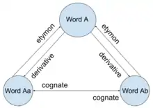 Diagram showing relationships between etymologically related words